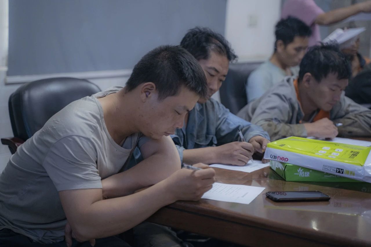在對行車、有限作業(yè)空間安全操作標(biāo)準(zhǔn)進(jìn)行細(xì)致學(xué)習(xí)后,全體參會(huì)人員一同觀看安全教育視頻,了解車間作業(yè)中發(fā)生的真實(shí)事故,以及事故帶來的人員財(cái)產(chǎn)傷害。安全生產(chǎn)教育培訓(xùn)的環(huán)節(jié),車間工人進(jìn)行行車安全知識(shí)培訓(xùn)考試。安環(huán)委主任表示,他希望通過現(xiàn)場筆試這一方式,檢驗(yàn)大家此次培訓(xùn)掌握情況,同時(shí)進(jìn)一步加深鞏固安全知識(shí)。